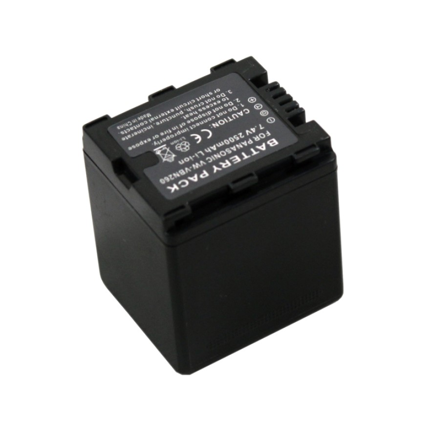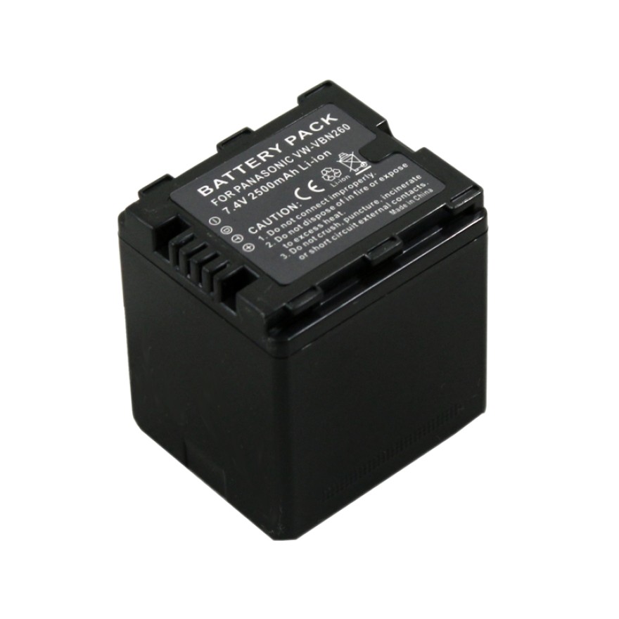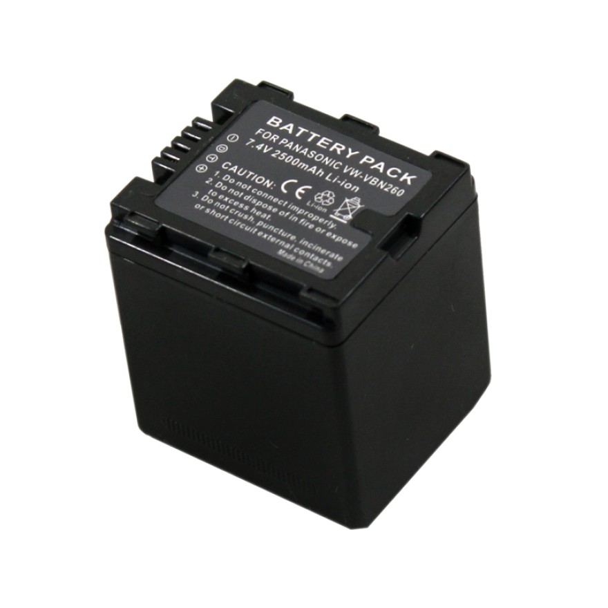 This new high capacity Panasonic VW-VBN260 battery provides more capacity than the standard system battery.Lower price, Up to 30% off! Longer battery life, no memory effect. Panasonic VW-VBN260 Battery can supply lasting energy for your Panasonic Camcorder Models. Panasonic VW-VBN260 Battery have passed stringent quality assurance procedures and achieve international standards CE, UL Listed, and/or ISO9001/9002 certification.100% compatible with original Panasonic VW-VBN260 Battery.
